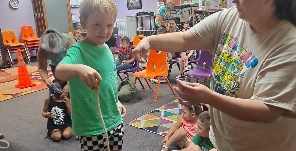 Children listened to two stories, learned about the Cowboy Code and some western animals, and even got the chance to practice with a lasso and "barrel race" around some cones. The adults even got in on the fun!